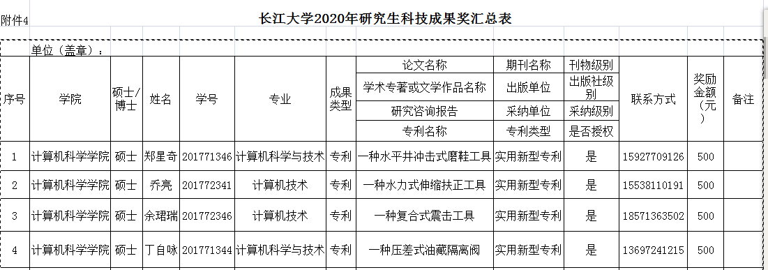 2020年研究生单项奖学金申请汇总公示