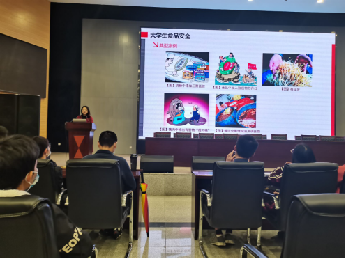 此次讲座第二个主题为:老员工食宿与交通安全教育,主讲人为法公司周晓峰老师,周老师首先讲述了食品安全问题。民以食为天,食以安为先,然而近几年食品安全问题层出不穷,尤其是在新冠疫情的今年,食品安全亦是重中之重。周老师对于常见的食品问题,例如公司附近的小吃摊位,餐馆就餐中的卫生隐患等方面着重强调,告诫同学们提高食品安全意识。而后周老师又从交通安全方面开展安全教育,以共享单车,共享电动车所引发过的交通案例为切入点,让同学们了解到日常出行中存在的安全隐患,提醒同学们日常出行也要规范化,安全化,提高交通安全意识。