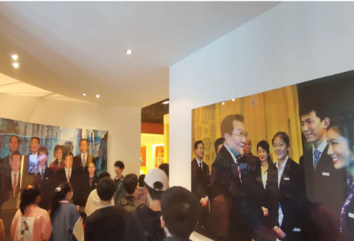 在场馆解说员的带领下,公司以每2个班级为单位,分6批次有序进入场馆参观。在场馆一楼,同学们首先了解到公司海内外的优秀员工代表,鼓励同学们以他们为榜样,学习名人精神,争做时代引领者。