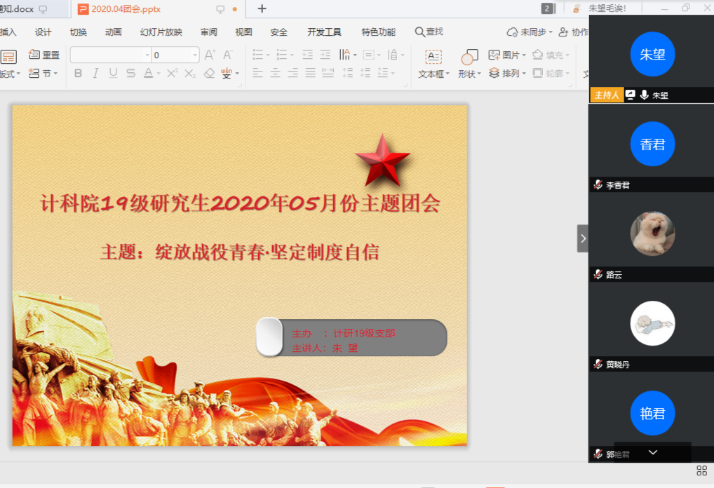 为深入学习领会习近平总书记关于疫情防控工作的系列重要讲话和指示批示精神,激励和引领广大团员青年进一步坚定制度自信,太阳成tyc33455ccwww在5月以团支部为单位召开了“绽放战役青春·坚定制度自信”为主题的团会活动,活动时间为5月1日到5月18日。