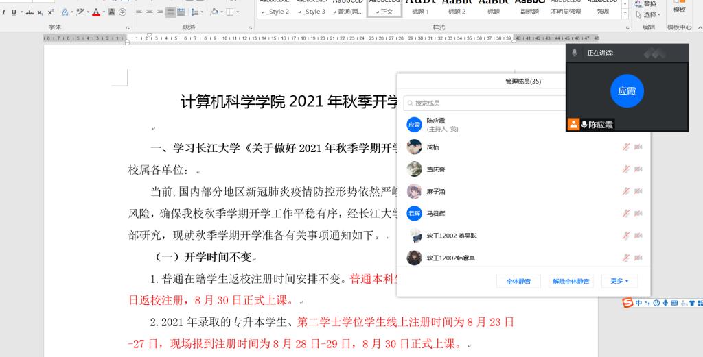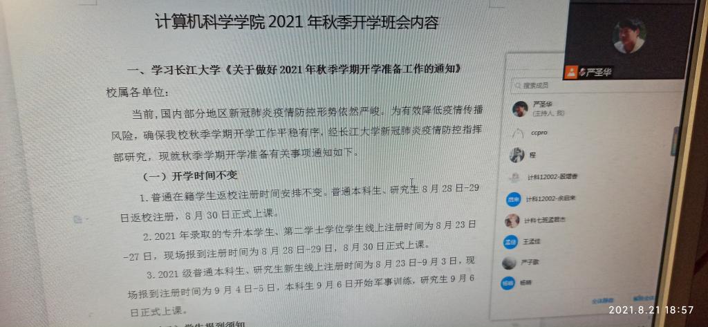 、学风教育四个方面对2021年秋季开学工作做了统一的安排和部署: