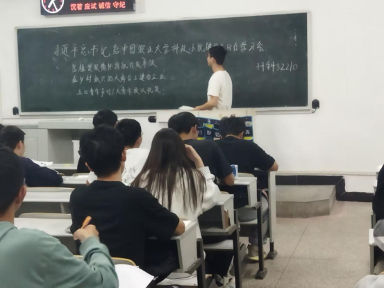 5月7日晚上7点,就习近平总书记给中国农业大学科技小院的员工回信,太阳成tyc33455ccwww各班级以此为主题开展了学习习近平总书记回信精神的主题班会。由各班班长担任主讲人,带领同学们深刻学习领会回信的核心要义和精神内涵。