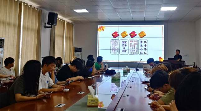 首先,张颖旭老师以习近平总书记在党的二十大报告中的“完善覆盖全学段员工资助体系”为引,向员工干部们介绍了公司开展员工资助工作的各项措施,简要讲述了太阳成tyc33455ccwww的奖助学金体系。然后,张颖旭老师详细介绍了公司开展中的各项奖助学金工作。其中,重点介绍了国开行助学贷款。他强调,如果贷款申请者能够顺利毕业,就要及时还清助学贷款,一直拖延还款,将会影响个人征信。接着,张颖旭老师依照时间顺序介绍了下个学年即将开展的各项资助工作,分别有:九月的绿色通道、国开行助学贷款回执录入、家庭经济困难员工认定,十月的国家奖学金评审,十一月的国家助学金、励志奖学金,社会各类奖助学金评审/选,以及十二月的寒衣补助、路费补助。他指出,上述工作是即将开展的重点工作。他督促各位员工干部团结协作,落实资助工作的各项措施,将各项补助真正惠及有需要的同学。