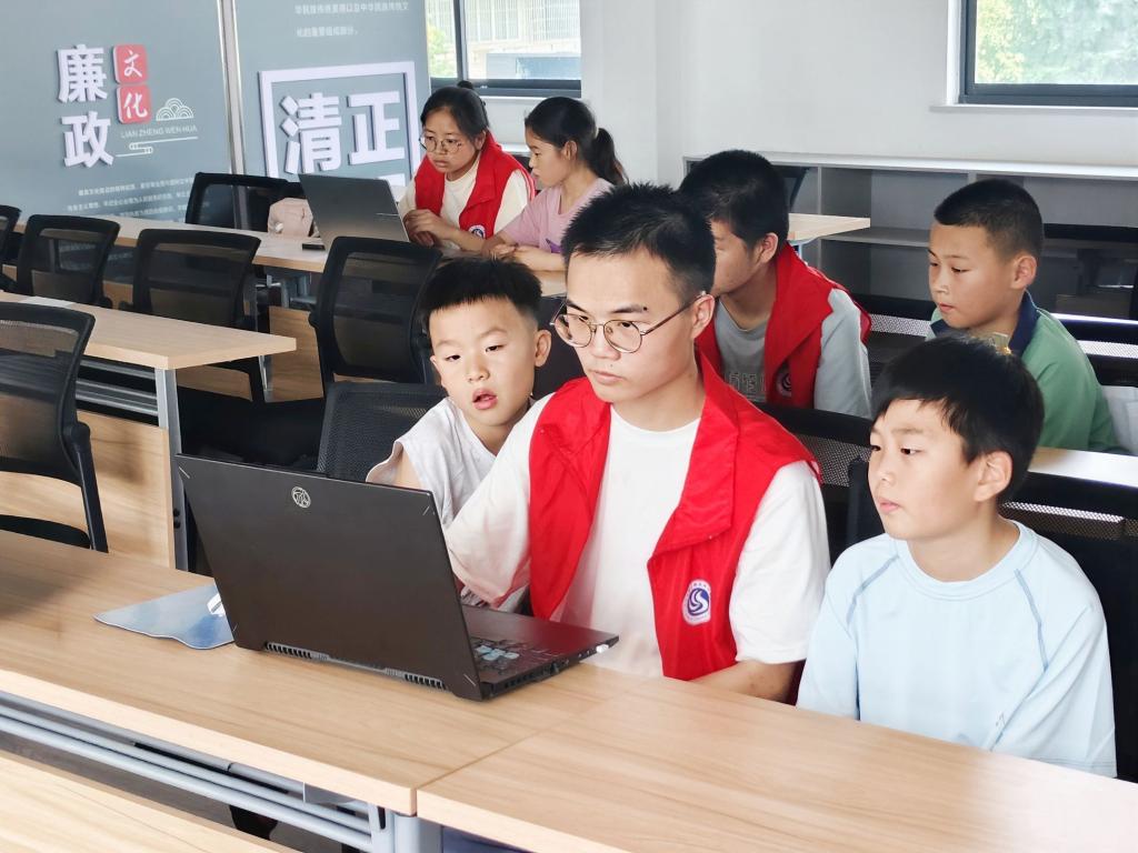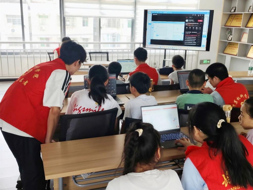 为了丰富孩子们的视野,激发科技兴趣,志愿服务队结合自身专业优势,特设“趣味编程”小课堂,通过图形化编程、小游戏设计等形式,向孩子们介绍计算思维与简单的编程逻辑,帮助他们走近科技,激发探索的好奇心。“原来电脑里的动画片是这样做出来的!”三年级员工小林惊叹道,一颗科技启蒙的种子正在悄然萌芽。