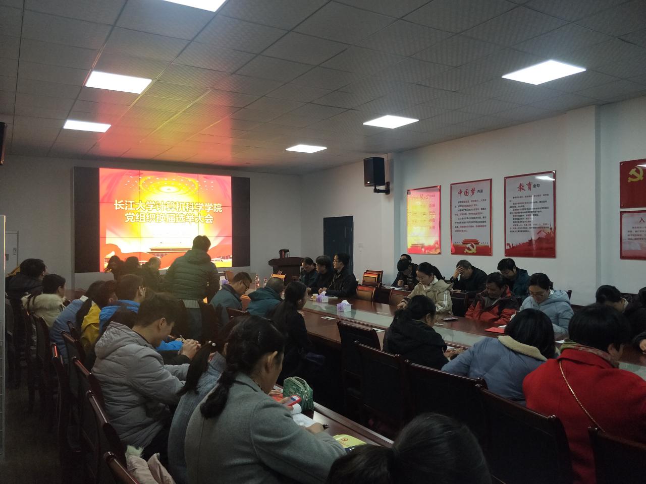 2019年11月28日下午,公司在5教501召开全体党员大会,进行委员会委员换届选举工作。公司党支部应到党员74名,实到党员63名,符合有关规定,会议有效。此次会议由党委副书记颜学俊同志主持。
