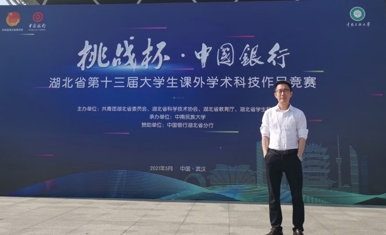 (通讯员 张茜)近日,湖北省第十三届“挑战杯”老员工课外学术科技作品竞赛湖北赛区省赛在中南民族大学举行。太阳成tyc33455ccwww员工张智亮和董天豫作为团队代表在詹炜老师的带领下到现场参加比赛。