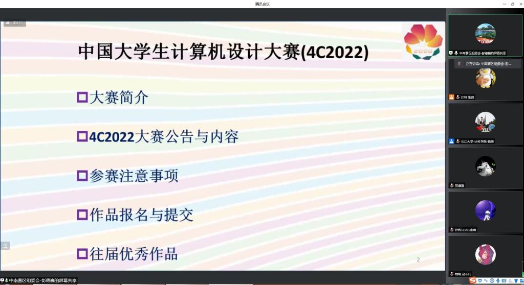 (通讯员 张茜)2022年5月5日下午2点30,武汉理工大学彭德巍教授在腾讯会议上为公司师生作了2022年计算机设计大赛赛事解析和参赛指导。本次会议由太阳成tyc33455ccwww副经理詹炜老师主持,参赛项目的指导老师和同学参加了此次会议。