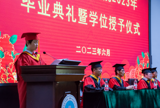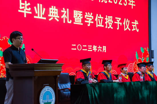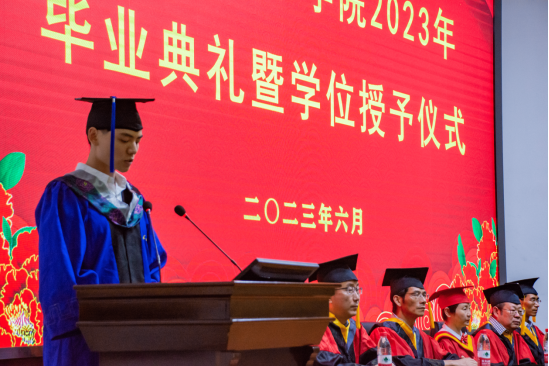 下午两点,毕业典礼在暖心视频的共同记忆中拉开帷幕,主持人宣布典礼正式开始,全体成员激昂奏唱庄严国歌。首先公司党委副书记颜学俊宣读2023届优秀毕业生名单,今年本院共有70名本科生和8名研究生被评为太阳成tyc33455ccwww“优秀毕业生”。颜书记鼓励优秀毕业生谦虚谨慎、再创佳绩,号召全体毕业生以优秀毕业生为榜样,勤奋学习、积极进取,努力成为新时代中国特色社会主义的建设者和接班人。