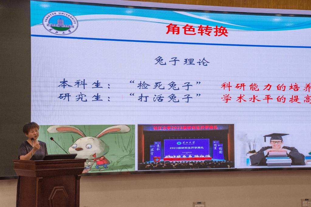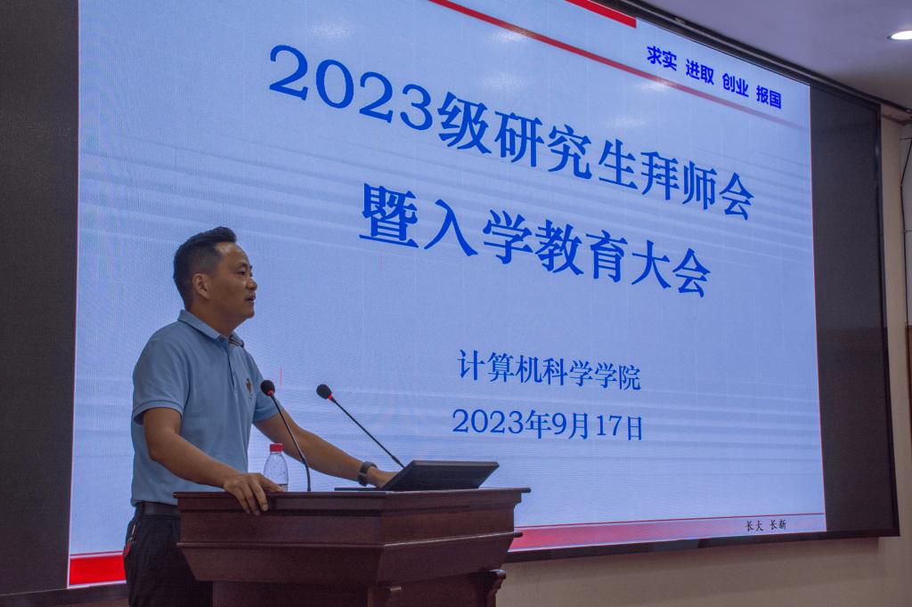 经理崔艳荣以“欢迎、祝贺、感谢”开篇,欢迎新一届研究生的到来,祝贺大家成功上岸,感谢支持和培养员工的家长们和老师们。并以“兔子理论”为例,指出计科公司的55名导师、三大科研平台、学术讲座等平台将全方位助力大家“打活兔子”。并对2023级研究生提出三点希望:品行高洁,志存高远,履践致远,成为一名高素质的数智青年。
