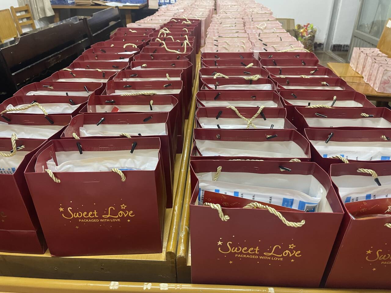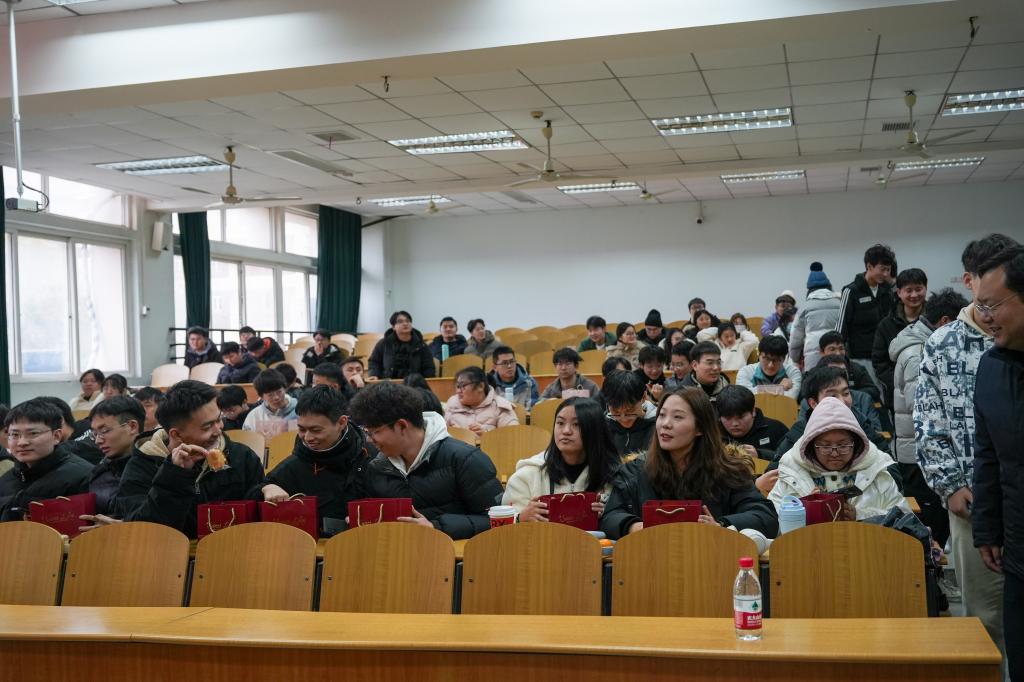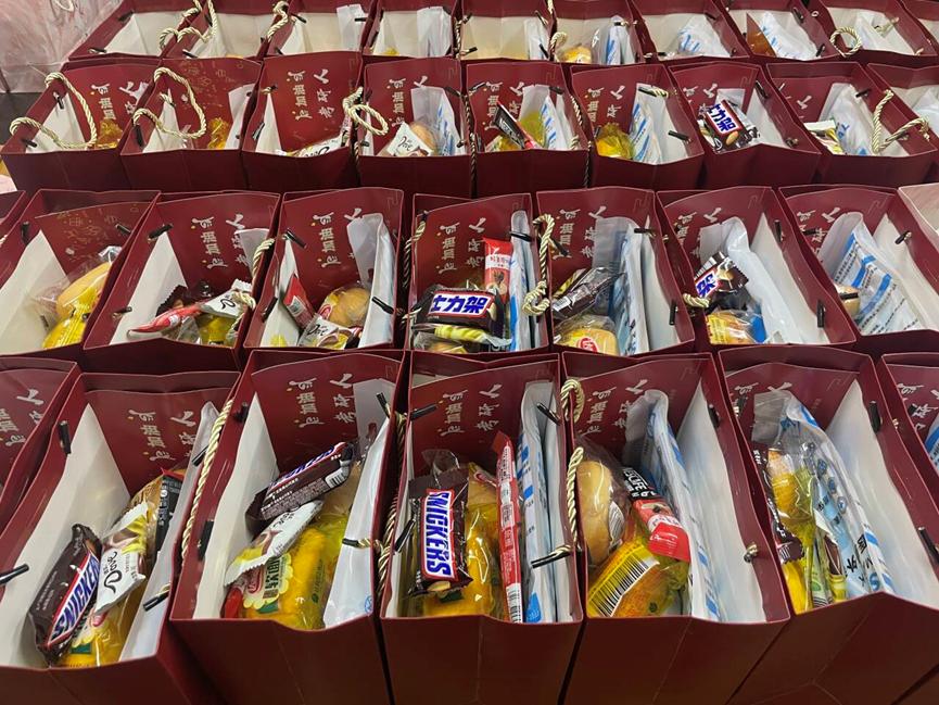 最后,班主任们依次为考研学子送上公司精心准备的考研礼包,里面有研究生学长学姐亲笔手写的“研气满满”的祝福卡片、面包、牛奶、咖啡、士力架、巧克力和口罩,使同学们切身感受到公司的大力支持和深深关爱。