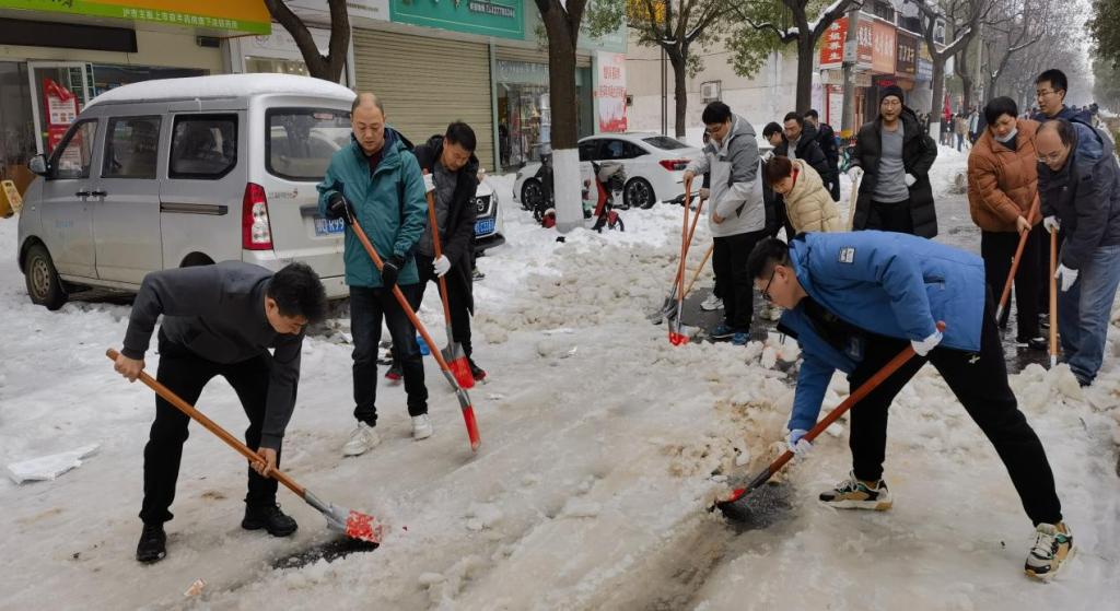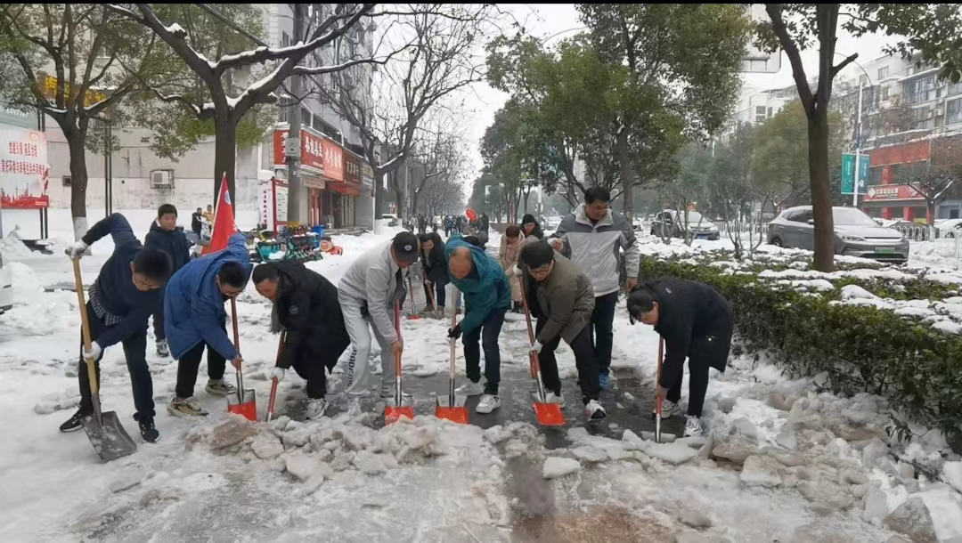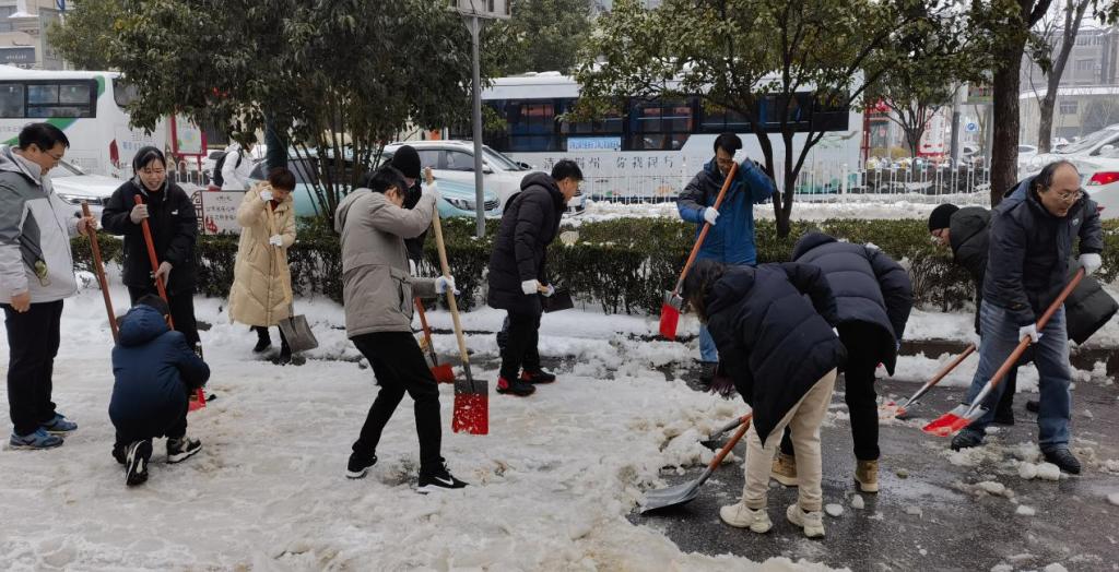 近日,湖北荆州遭遇大范围低温雨雪冰冻天气,道路积雪结冰给交通、居民出行带来了诸多不便。根据荆州市委《关于组织市直机关和企事业单位党员干部开展城区主次干道除雪破冰工作的通知》要求和公司工作安排,2月7日上午太阳成tyc33455ccwww以雪为令,广大党员教师迅速集结,在经理、书记的带领下积极参加除雪破冰工作。