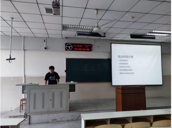 本次专业交流会分三个环节依次举行。首先,公司领导陈经理致活动开幕词,表示专业交流会是网络工程和信息安全专业的优良传统,每年都会邀请优秀的毕业生代表分享专业学习经验,目的是希望大家以身边的优秀学长学姐为榜样,养成良好的品质,明确学习目标,做好学习规划,努力学习专业知识,掌握过硬的本领,勇于追逐自己的梦想,未来为国家和社会做出积极的贡献。