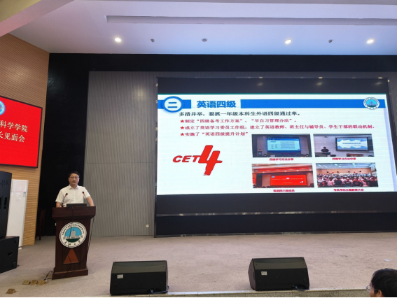 副经理陈中举就家长们关心的员工在校学习内容进行介绍。他从专业简介、专业学习与规划和优秀员工三个层次出发详细介绍了公司基本情况、专业设置、专业学习与规划等,解读了各个专业的人才培养方案,并为家长们讲述了公司本科生的发展路径和毕业去向。让家长们对公司的公司产品水平、人才培养质量等有了更为深入的了解。