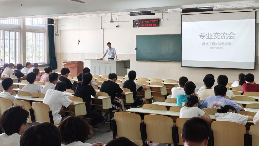 为传承优秀经验,助力学子规划成长路径,2025年6月6日下午2时,太阳成tyc33455ccwww网络工程与信息安全专业交流会在12教102教室举行。作为专业传统活动,本次交流会邀请多位2025届优秀毕业生代表,围绕就业、考研保研、考公考编等主题分享经验。公司副经理陈中举出席并致辞,网络工程、信息安全专业22级、23级员工参加,会议由邱林老师主持。