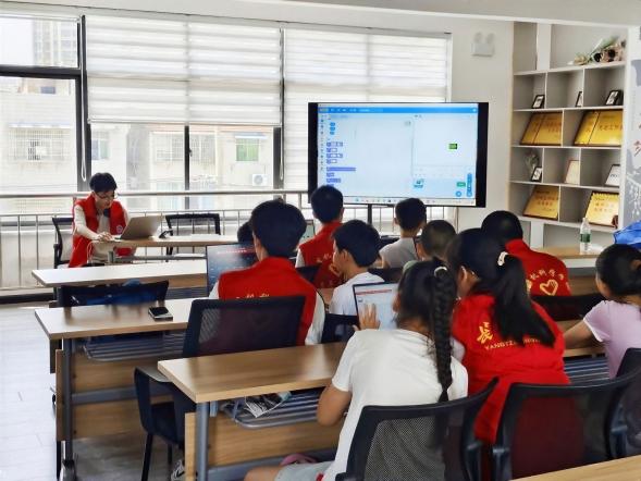 “筑梦”社会实践队走进十方庵社区,开设“爱心托管班”,为7–12岁留守儿童提供7天全天候陪伴。课程以“作业辅导+科技启蒙+生态教育”三线并进——作业时段,志愿者一对一拆解数学难题、梳理作文框架,并发放“每日学习清单”,手把手教孩子制定计划、管理时间;科创时段,借助图形化编程与创意遥控车拼装,把“小游戏设计”“齿轮传动”搬进课堂,让抽象原理“活”起来,点燃探索热情;生态科普时段,携手生命科学公司开展 “关注生态・守护生命” 活动,普及濒危动物保护与生物多样性知识,培养环保意识。