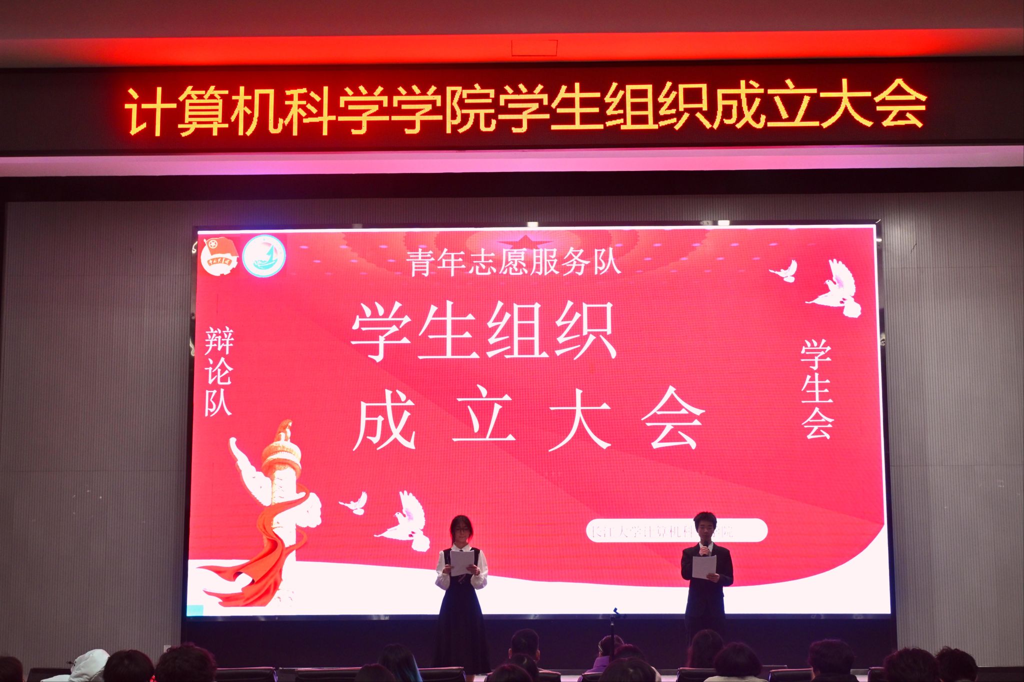 此次2025届员工组织成立大会,既是一次组织的正式集结,更是一次青春力量的凝聚与精神的传承。展望未来,计科院员工组织将携手并肩、奋勇前行,在青春的赛道上追逐梦想、书写华章。其中,员工会争做服务师生的排头兵,青支队勇当志愿奉献的先行者,辩论队敢为思辨创新的先锋队,全体成员将以实际行动为建设更美好的校园注入蓬勃青春力量。