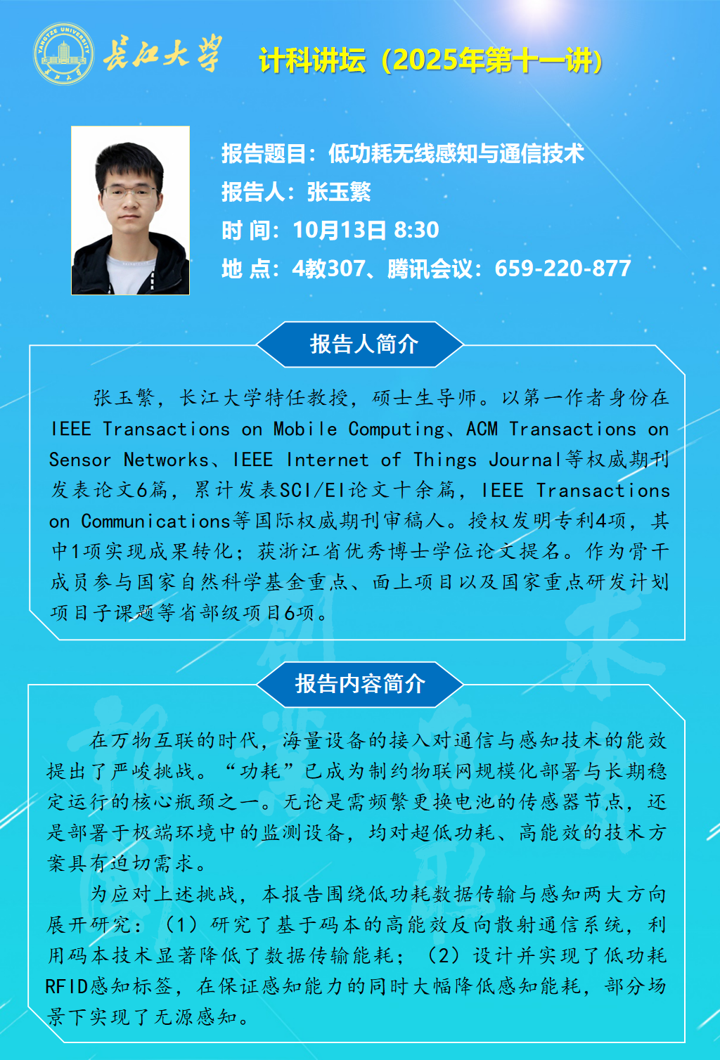 计科讲坛(2025年第十一讲):低功耗无线感知与通信技术