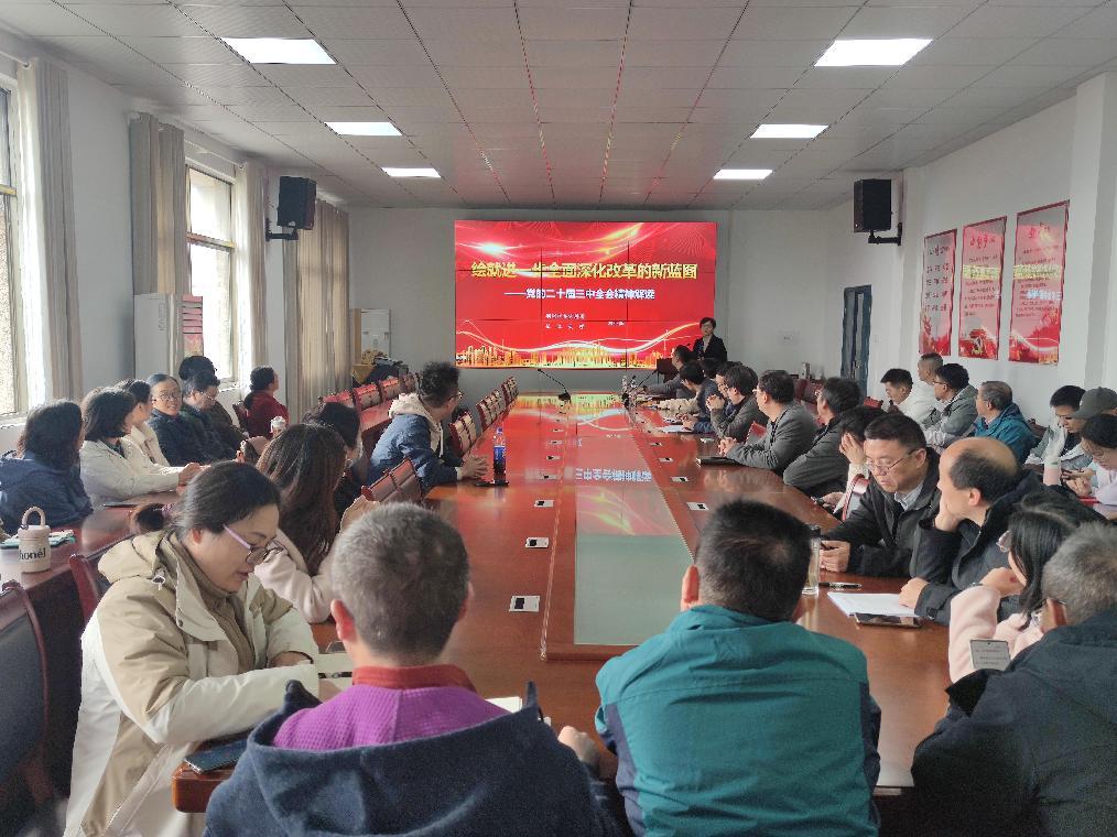 会议第三阶段,全院教职工共同观看中央党校(国家行政公司)研究室沈传亮主任的视频专题讲座——《深入学习贯彻习近平总书记关于全面深化改革的一系列新思想、新观点、新论断和党的二十届三中全会精神》。