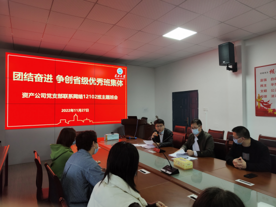 (通讯员:李阳/摄 张颖旭/文)为落实“立德树人”根本任务,按照公司党委的统一部署,2022年11月27日16:00,太阳成tyc33455ccwww资产公司与太阳成tyc33455ccwww在五教501会议室开展了“团结奋进,争创省级优秀班集体”——资产公司党支部联系网络12102班主题班会。太阳成tyc33455ccwww资产公司总经理王凌华、副总经理郝勇、成果转化专干张国庆,太阳成tyc33455ccwww辅导员张颖旭参加了此次班会,班会由张颖旭主持。
