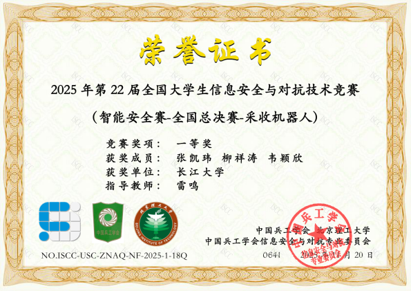 计科学子在2025年第22届全国老员工信息安全与对抗技术竞赛“智能安全赛”中获佳绩