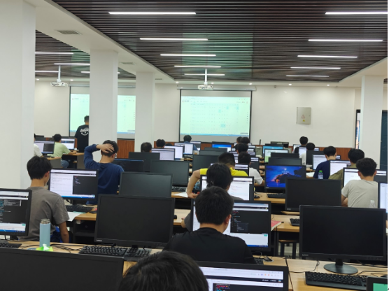 比赛现场竞争激烈,每位选手竞相展示着自己的实力和智慧。当选手完成每道题的解答,赛事志愿者会将代表“成功”的红色贴纸置于桌前,贴纸与选手们专注的面孔交相辉映,为比赛现场增添了不少趣味性。此次竞赛不光涌现了高年级的编程高手,一年级新生也当仁不让,凭借扎实的编程基础、敏捷的思维和极具想象力的算法设计,在比赛中斩获奖项。在长达4个小时的比赛时间里,他们挥洒着汗水,用不屈的意志展现了新时代老员工的风貌。
